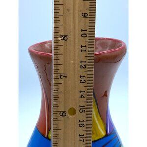 Tonala Mexican Pottery Hand Painted Vase 7 1/2 inches high. Beautiful vase with senes from a Mexican town.