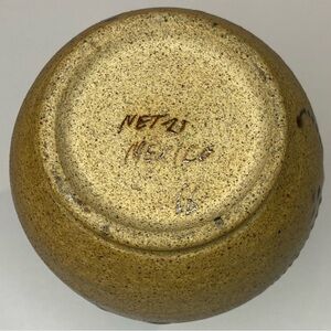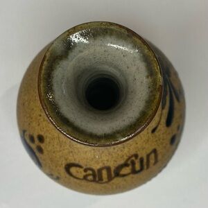 Stunning Netzi Pottery vase with hand painted flowers, leaves and bird. Perfect for a few buds or pampas grass. It does say Cancun on the side but isn’t seen from the front of the vase. It stands 6” tall and the opening is 1.5” wide.