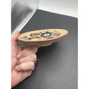Tonala Plate Trinket Dish Floral Folk Art Signed Netz Mex from Mexico 5-1/4" Dia
