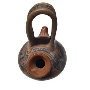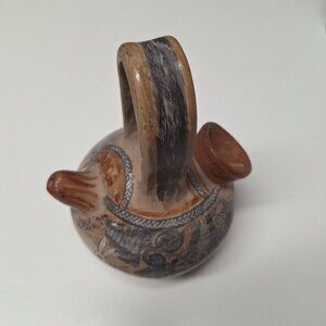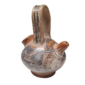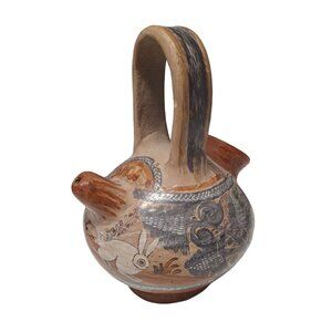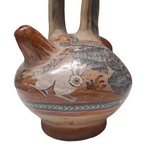 Tonala Pottery Double Spout Water Jug Rabbit Floral Agave Design Mexico Folk Art