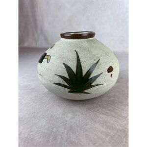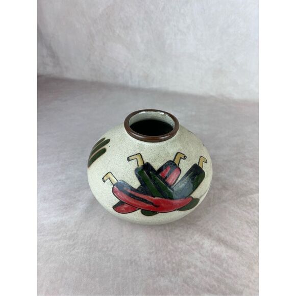 Tonala Pottery Vase Peppers Cactus Hand Painted Signed Mexico