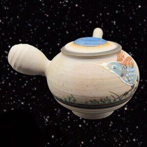 Tonala Talavera Pottery Teapot With Pianted Bird Marked Folk Art Pottery 6”T 4”W.