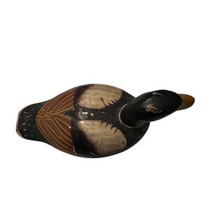 This Tonala wood duck decoy is a hand-carved and hand-painted piece, showcasing a rustic style with a multicolor finish. It reflects a nature and wildlife theme, suitable for adults. Originating from the late 20th century, this handmade decoy is pre-owned. Keywords: Tonala, duck decoy, wood, multicolor, rustic, nature, wildlife, hand-carved, hand-painted, late 20th century, handmade, pre-owned, wood duck, adults. Type: Duck Decoy Brand: Tonala Material: Wood Color: Multicolor Style: Rustic Theme: Nature, Wildlife Department: Adults Era: Late 20th Century (1970-1999) Features: Hand-carved, Hand-painted Handmade Comes from Smoke Free Home Every Purchase you make helps supports local small businesses