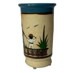 Tonala Vintage Mexican Folk Art Hand Painted Vase 7.75" x 4.5" Signed