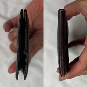 Tonelli Bifold Leather Wallet For Men Made in Italy #2767, bill clip holder in center, classic, elegant, accessory, high-quality dark brown leather, sophistication, timeless style, everyday use, practical, stylish, gentlemen, quality craftsmanship, sleek design.