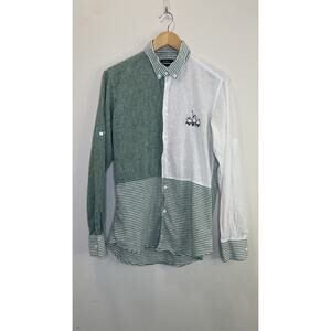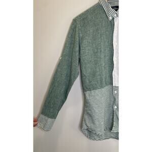 Tonelli Shirts XL 43/44 Slim Fit Linen Preppy Coastal Striped Turkey Roll Tab