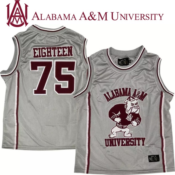 NWT Tones of Melanin Alabama A&M Bulldogs Grey Basketball Jersey. Size Extra Large. Grey And Maroon. Sleeve;ess. Embroidered Team Graphics. Officially Licensed. 100% Polyester MeshProduct