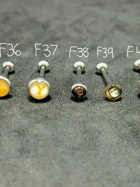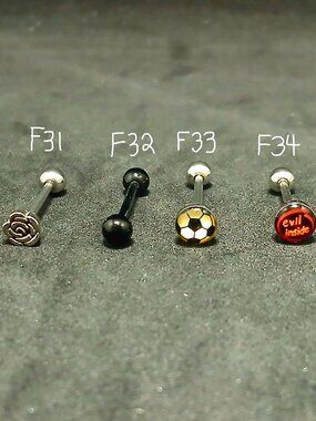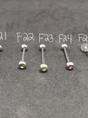 Tongue rings, $20 each or 3 for $50. Please reference the photo and specify the piece(s) you'd like (e.g., A29 or B13).