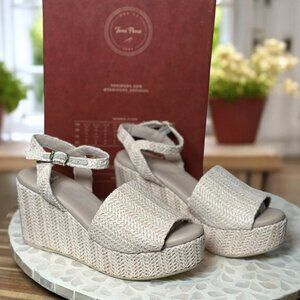 Toni Pons $189 Triana Espadrille Wedge Sandals Ecru Raffia Platform Women 6 NIB