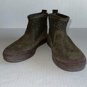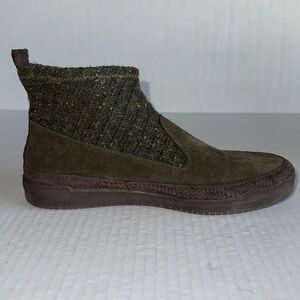 Toni Pons Gigi olive suede ankle booties. Knit ankle top. Size 41 = US 10. Very good pre owned condition