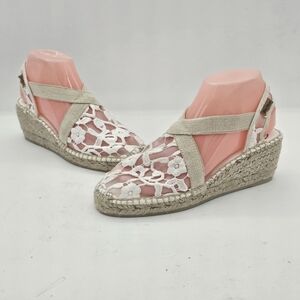 Toni Pons Terra-F Ecru Espadrille Floral Cutout Wedge Sandals Size 8 US