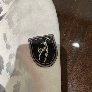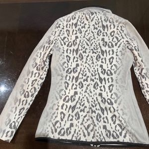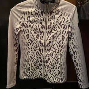 EUC Flattering animal print jacket size S to S/M. 2 front zippered pockets. Measurements are 17" between armpits and 23" long from shoulder to hem