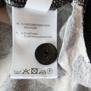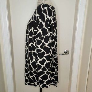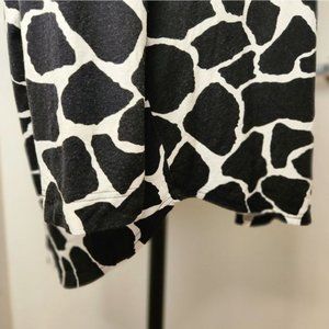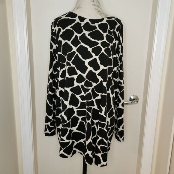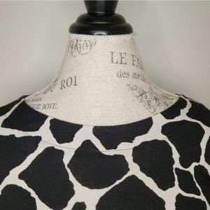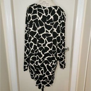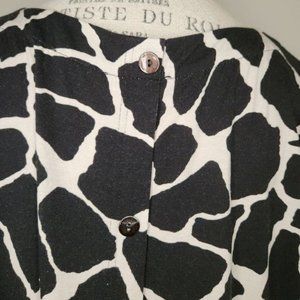Black& creamy white, monochrome giraffe print long sleeve tunic top, with faux buttons up the back, by Toni T.