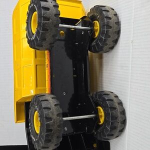 Sturdy Tonka dump truck with bold yellow design. Features durable wheels for rugged play. Perfect for young construction enthusiasts.