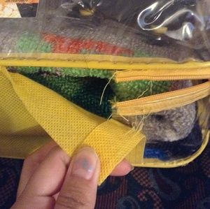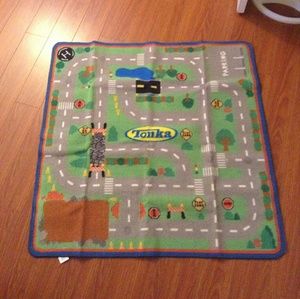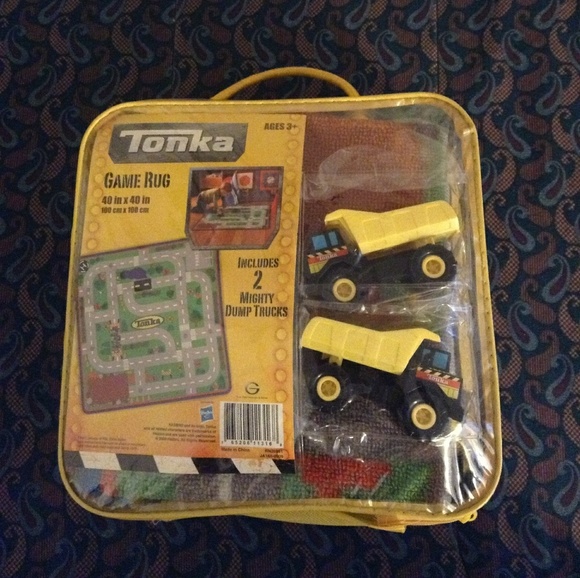 Includes the mat, 2 trucks, and the travel bag. The travel bag is damaged and one of the zippers is still on the tracks but still works. The mat is yellowed and has damage as it's been in the closet for many years. The mat is 39 inches long and 39.5 inches wide.