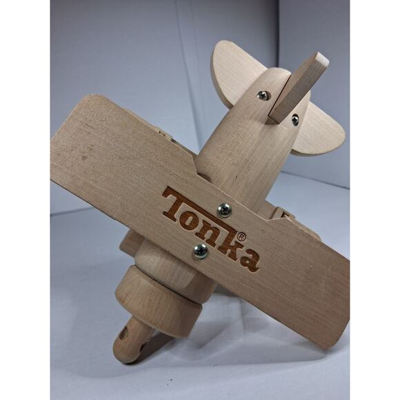 This beautifully crafted Tonka wooden toy airplane is perfect for display or gentle play. Made from natural, unfinished wood, it features moving parts like a spinning propeller and rolling wheels. A timeless piece for Tonka collectors or fans of wooden toys.