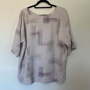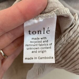 Tonle Vneck linen blouse women’s medium handmade taupe maroon EUC