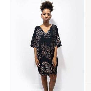 Tonle Sustainable Veha Kaftan-Style Cactus Print Dress Blue V Neck Size Small