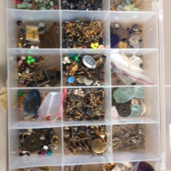 So many beads, and findings. All types of beads, from small to large, quartz to coins, decorative and more. I am cleaning out my jewelry making supplies. Have fun with what you will discover here. Also included is the case. A great find.