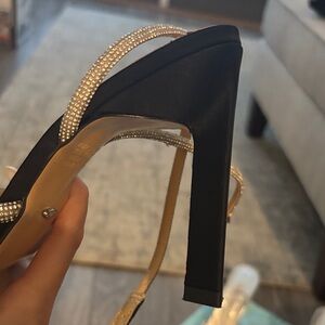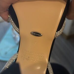 Chic Tony Bianco heels in black. Features a dazzling rhinestone bow. Perfect for elegant occasions.