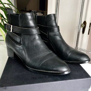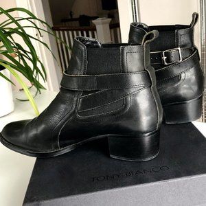 Women's Tony Bianco Black Leather Rigby Ankle Boots With Strap Size 9.5