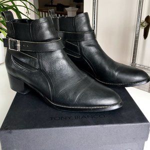 Stunning TONY BIANCO Black Leather Ankle Boots