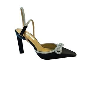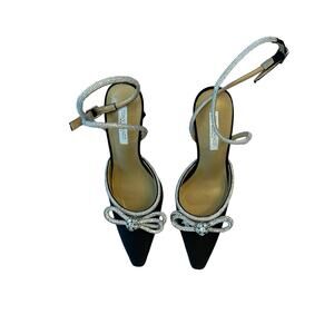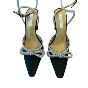 Tony Bianco Elsie Heels Embellished Ankle Strap Pointed Toe Black Satin Size 8.5