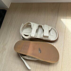 Cream leather sandal, womens size 10. Velcro straps. Worn <10 times.