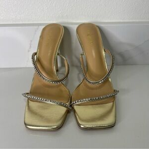 Tony Bianco Metallic Sandal Nappa Leather Gold Rhinestone Square Toe Sz 7.5