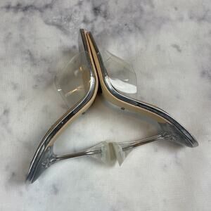 Tony Bianco Serri Clear Vinyl + Metallic Silver Hourglass Heel Mule Sandals Sz 7