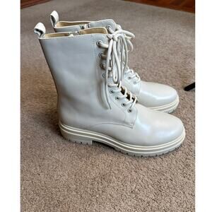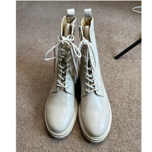 Tony Bianco Wya Leather Moto Boot in Vanilla Capretto Size 10 EUC