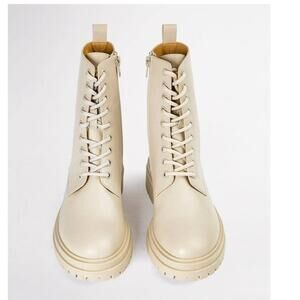 Keywords: Tony Bianco Wya Moto boot, cream moto boots, Lace up moto boots, Leather moto boots, utility boots