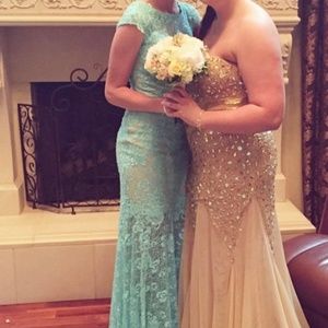Tony Bowls Aqua Lace Prom Dress/Evening Gown
