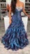 Absolutely stunning formal gown from Tony Bowls. Blue iridescent color with dark red hues. Gathered waist with stone embellishments. Gorgeous full skirt with multiple layered tulle (see last photo). Fully lined, back zipper closure, padded cups.