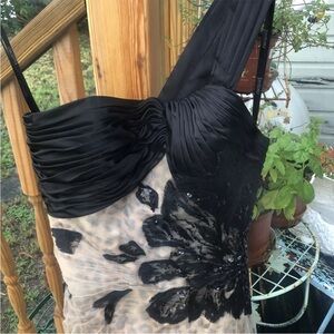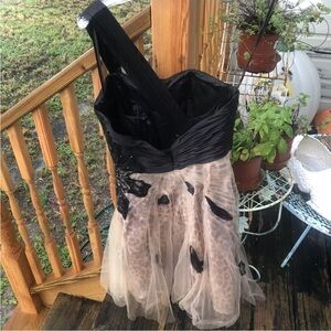 Tony Bowls Evenings One Shoulder Cocktail Dress Sz 8 Floral Leopard Tulle Sequin.