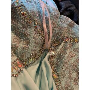 Tony Bowls Formal Gown Evening Dress Mint Teal Strapless Sweetheart Jewel 2