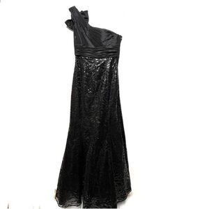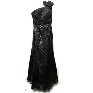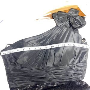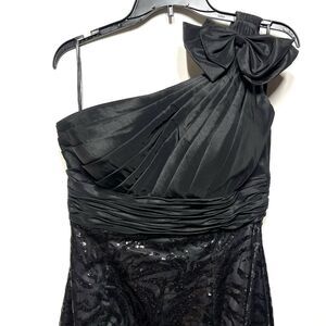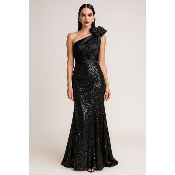 Tony Bowls One Shoulder Bow Sequins Fit and Flare Gown in Black 10