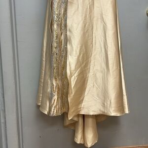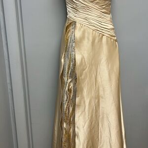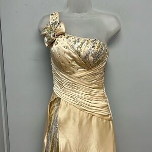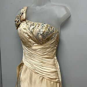 Tony Bowls One Shoulder Satin/ Sequined Gown & Hairpiece- Champagne Size 0