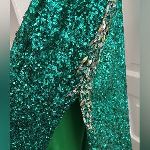 Tony Bowls prom dress, green sequins with AB rhinestone embellishments
