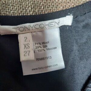 Tony Cohen Womens Wrap Front Drape/Pleated Detail Sleeveless Dress Black Size 2 Make a sophisticated statement with Tony Cohen Women's Wrap Front Sleeveless Dress in black, featuring drape and pleated details for an elegant and chic look. Condition: Pre-owned in very good condition. Brand: Tony Cohen Tagged Size: 2/XS/27 Color: Black Fabric Content: Wool/Silk, Lining: 100% Viscose Style/Features: Faux wrap front, Sleeveless, Drape detail on the front and pleated on the back. Approximate Measurements:(Laying flat) Pit-pit: 16" Length: 30" Thank you for shopping with us. Visit our store for more products, brands, and designs. We offer low and affordable prices. Send us a message!! SKU: O 6
