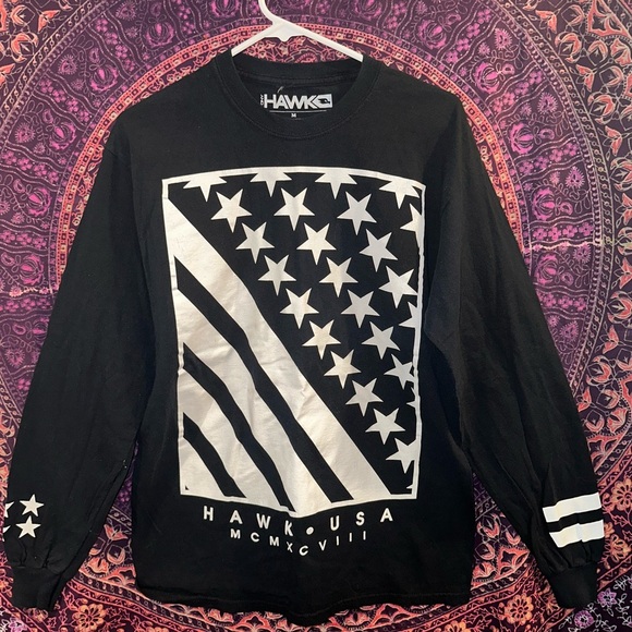 Tony Hawk Black and White Star Stripe Long Sleeve Tee