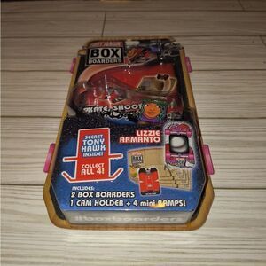 Tony Hawk Box Boarders LIZZIE ARMANTO W/Secret Tony Hawk Inside 7 Pcs. Packaging has some wear from age and storage. Sold as is.