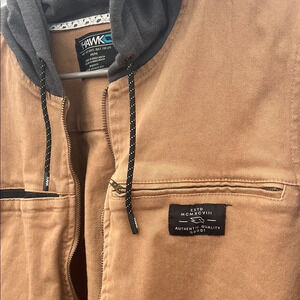 This Tony Hawk jacket combines a lightweight design with a classic workwear aesthetic, featuring a durable brown fabric and a contrasting black collar. Ideal for casual outings, it offers a structured fit that balances style and functionality.