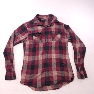 Tony Hawk Gingham Flannel Casual Button Up Shirt Mens Size Large L Red Beige