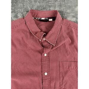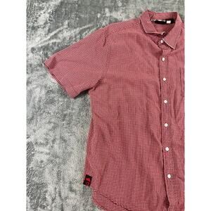 Tony Hawk Men's L Red White Gingham Check Button Front Short Sleeve Shirt Skate