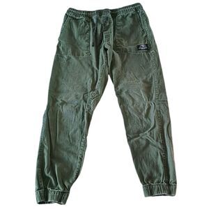 Comfortable Tony Hawk jogger-style pants in an olive green color. Made with soft cotton stretch fabric, elastic waistband, and adjustable drawstring for an easy fit. Features front patch pockets, back pocket, and subtle Tony Hawk branding—perfect for skating, streetwear, or casual everyday wear.
