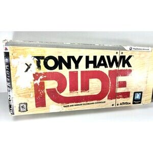 Tony Hawk Ride Skateboard Controller for Sony PlayStation 3. This is the original OEM version and comes in its original box. The skateboard controller has been tested and is fully functional, offering the authentic motion-sensing gameplay experience that made Tony Hawk Ride unique. Please note that the required wireless dongle is not included. The box shows normal signs of wear from stickers, but the skateboard itself is in good working condition. This is a great addition for collectors, fans of the Tony Hawk series, or anyone looking to relive a classic gaming experience on the PS3.