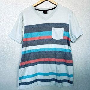 Tony Hawk Striped Tan Gray Blue Pocket T-Shirt L