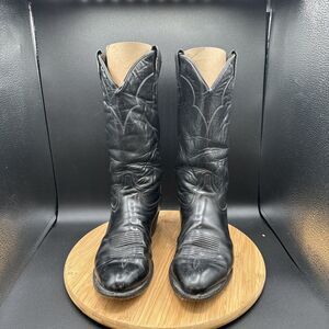 Tony Lama 5984 Men Size 8.5D Black Leather Classic Pull On Western Cowboy Boot
