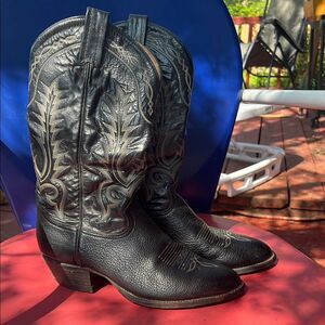 Tony Lama Black Leather Cowboy Boots with Embroidered Design Style 6904 Size 9 D